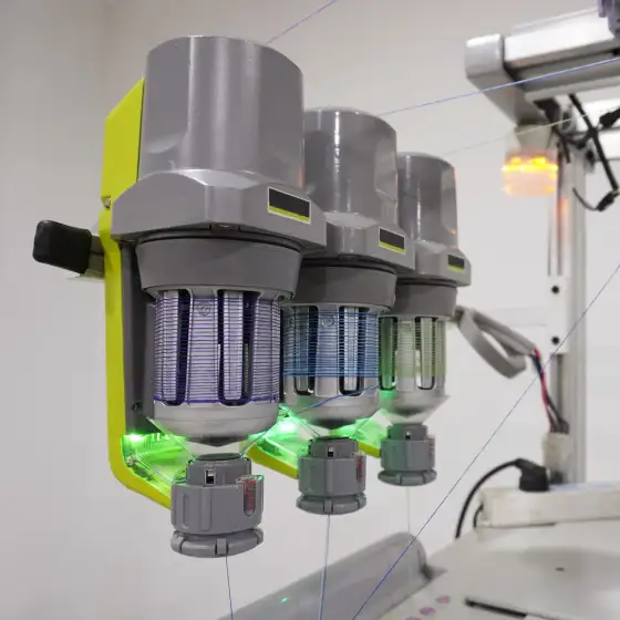 | Dispositif d'alimentation en fil | Le dispositif de stockage du fil et le dispositif de stockage de la trame (en option) contrôlent avec précision la force de tension du fil afin d’assurer une qualité homogène sur l’ensemble du tissu. | |||